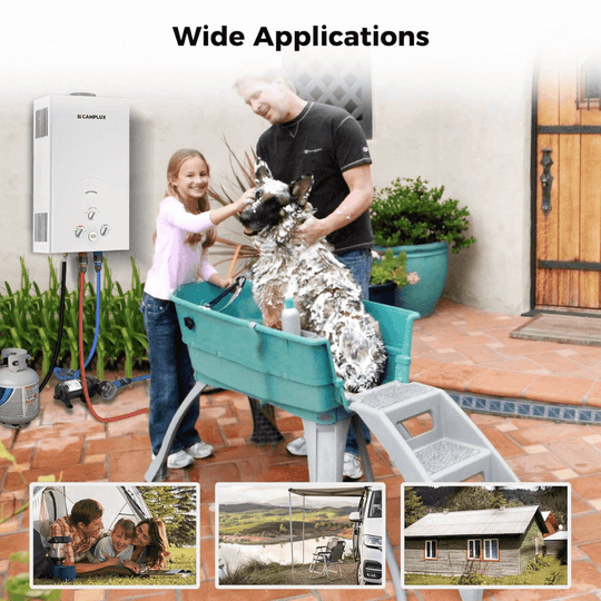 Tankless Water Heater, Camplux 2.64 GPM Outdoor Propane Gas Water Heater with 4.33" Rain Cap, Camping Shower, White 2.64 GPM Instant Water Heater- Rated at 2.64 GPM, this propane hot water heater provides endless hot water...Sale price $279.99Regular price $329.99Sale price $279.99Regular price $329.99 -