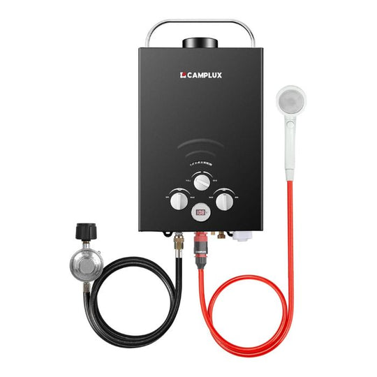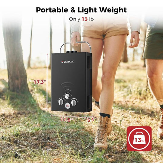Portable Water Heater, Camplux 1.58 GPM Tankless Gas Water Heater, Black 𝐏𝐨𝐫𝐭𝐚𝐛𝐥𝐞& 𝐋𝐢𝐠𝐡𝐭 𝐖𝐞𝐢𝐠𝐡𝐭 - Only weight 13lb and features a foldable handle, easy to carry on and hang for outdoor use 𝐈𝐧𝐬𝐭𝐚𝐧𝐭 𝐇𝐨𝐭 𝐖𝐚𝐭𝐞𝐫 -...Sale price $179.99Regular price $199.99Sale price $179.99Regular price $199.99 -