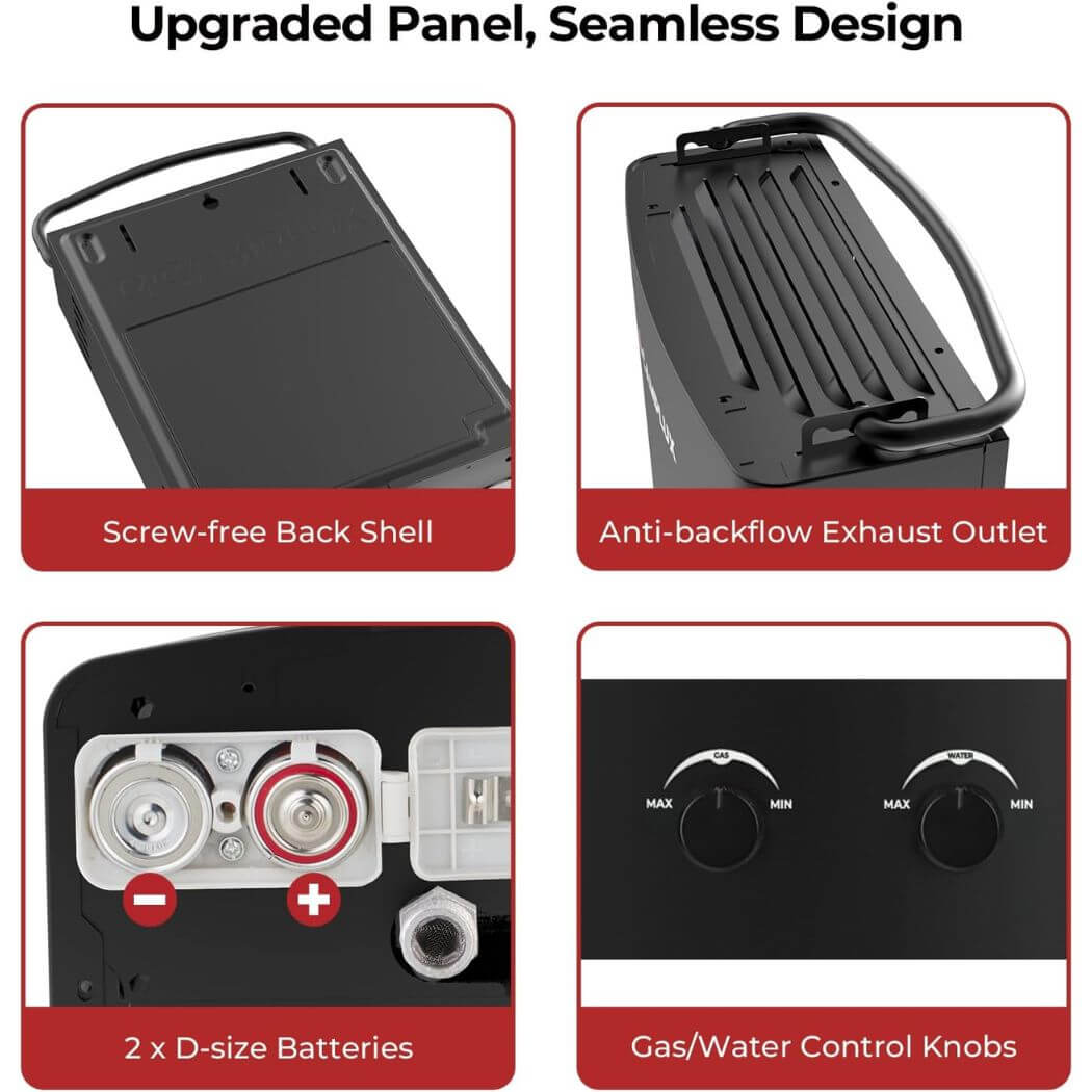 • Safey Insurance: Camplux propane tankless water heater was CSA certified, 6-in-1 protections ensures you a comfortable outdoor shower.